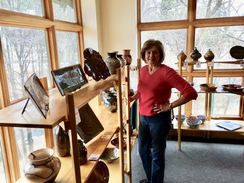 From her modest home studio in Queensbury, NY, Yvonne has created a wide range of display and functional pottery. In Yvonne’s hands, functional works (food/liquid/oven safe) are also works of art. Functional bowls, vases. platters, pitchers and mugs are covered in expressive glaze combinations that add to the artistry of her forms. Display works include Raku and Saggar. Raku results are highly unpredictable and can reveal stunning results, sometimes with bold colors and glossy surfaces. On occasion, Yvonne will be inspired to create a Saggar piece. These display pieces utilize an ancient process that also yields unpredictable and unrepeatable results. The pieces are dramatic. Each Saggar draws a connection to the natural earth; at times resembling storms at sea, with lightning and rolling clouds. The uniqueness of these works is even more apparent when rotated. Each slight turn of the piece creates a different vision from which to reflect upon. Yvonne’s Saggars have gained acclaim throughout the region, and she has been recognized in the Post Star for her “Transcendental Pots”.